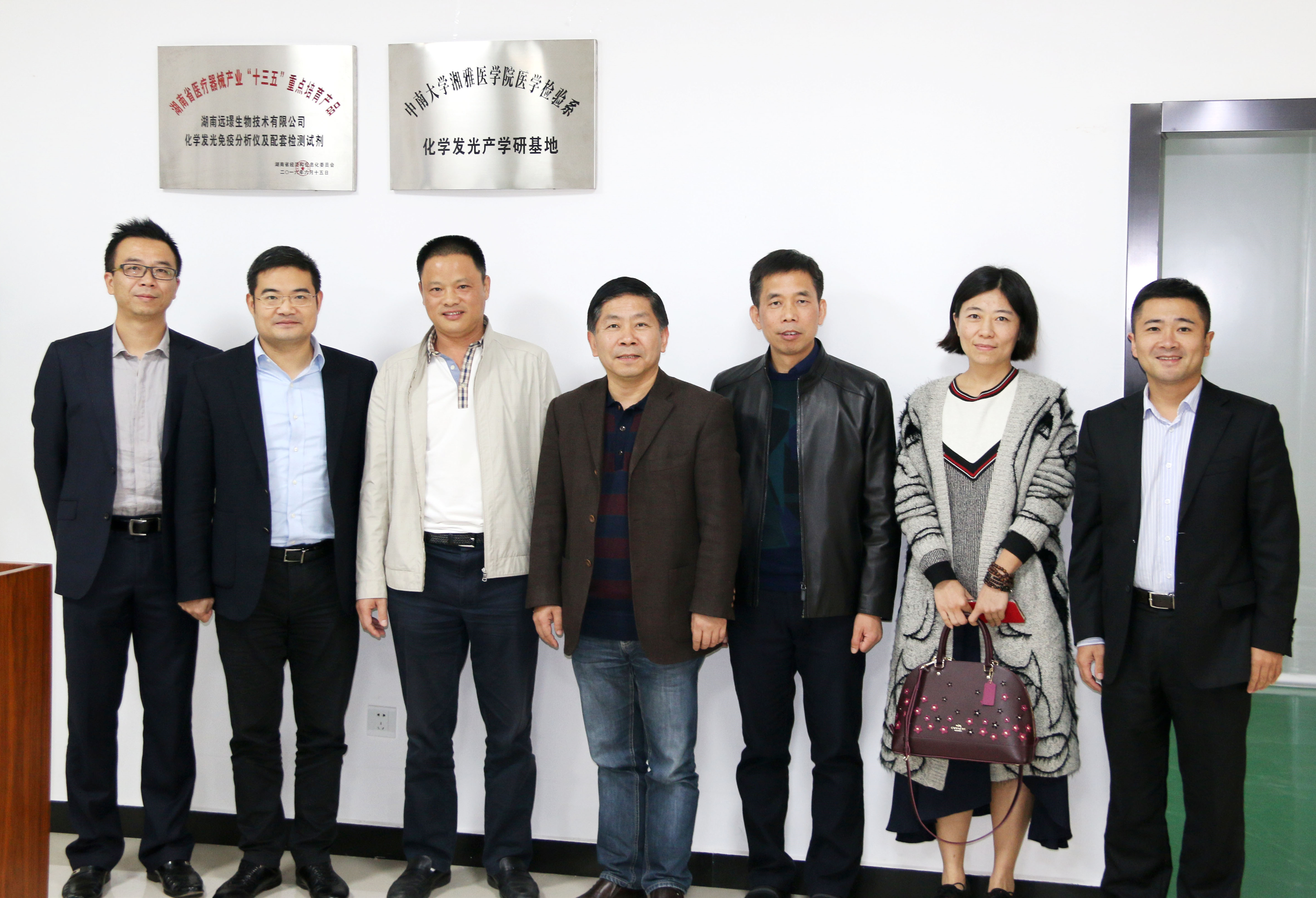 中南大学湘雅医学院医学检验系徐克前教授、长沙市医疗器械行业协会会长郭德斌先生、长沙市食药监局器械处林相志副处长莅临公司落实产学研基地建设及项目考察