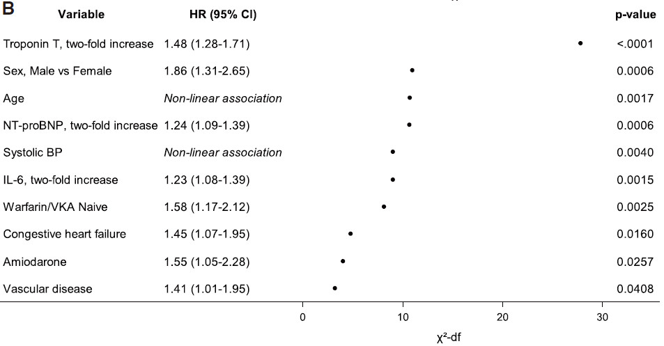 图1:ARISTOTLE研究事后分析显示,cTn能影响房颤患者心脏性猝死的发生